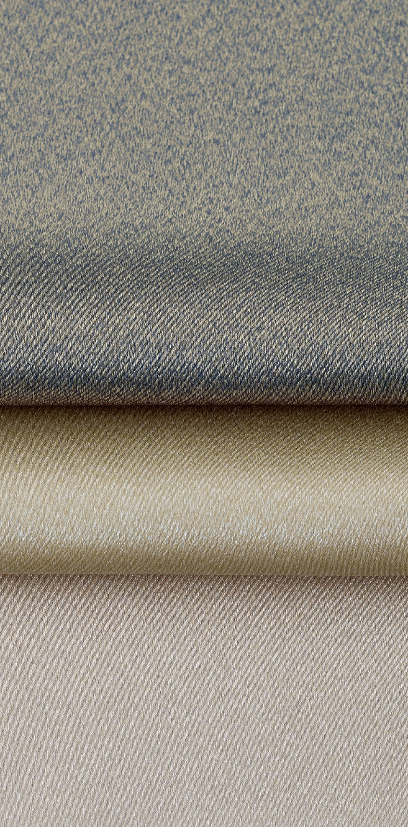 きらきらと乱反射する光沢と表面の繊細な凹凸は、オリジナルの糸から開発された生地ならではの特徴です。』