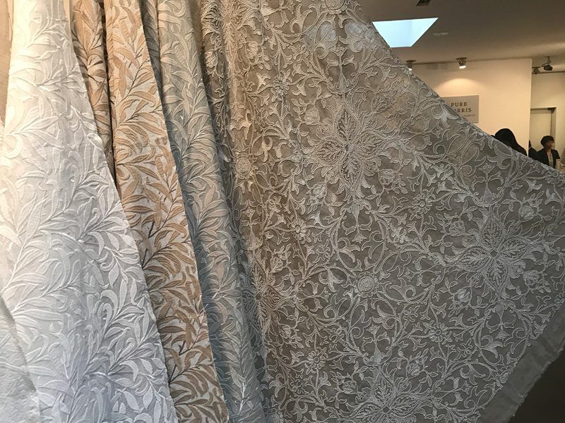従来のモリスファンも、また、モリスデザインが好みでなかった方をも虜にするこの白とベージュ色を基本としたプリントや刺繍地の新しいモリスを、ぜひショールームで手に取ってご覧ください。